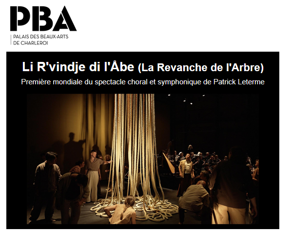 Li R’vindje di l’Åbe (La Revanche de l'Arbre) | Première mondiale du spectacle choral et symphonique de Patrick Leterme, ce week-end au PBA !